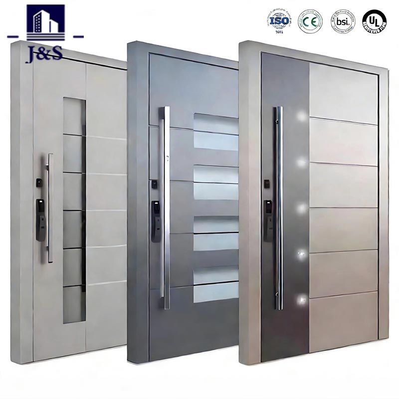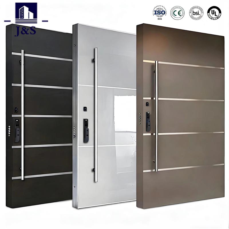 Höj din ingång med stålsäkerhetsdörren från J&S, som erbjuds till konkurrenskraftigt pris av en pålitlig kinesisk tillverkare. Den kombinerar robust säkerhet med modern minimalistisk estetik, den har eleganta horisontella metallremsor och en hållbar ram i rostfritt stål. Konstruerad för stöldskydd och väderbeständighet, är denna säkerhetsdörr i stål perfekt för både bostäder och kommersiella entréer. Dess sofistikerade matta finish kompletterar modern exteriör, medan den släta, lättstädade ytan säkerställer långvarig briljans. Den uppfyller de högsta säkerhetsstandarderna och finns tillgänglig i anpassade storlekar för att perfekt passa din dörröppning, vilket gör den till ett idealiskt val för köpare som söker en pålitlig leverantör eller fabrikskälla.